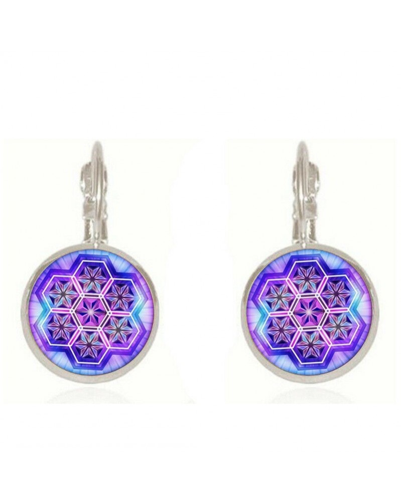 Nincs szín - 2018 Mandala Glass cabochon (18MM) karos fülbevalók ezüst női ékszerek GB-164
