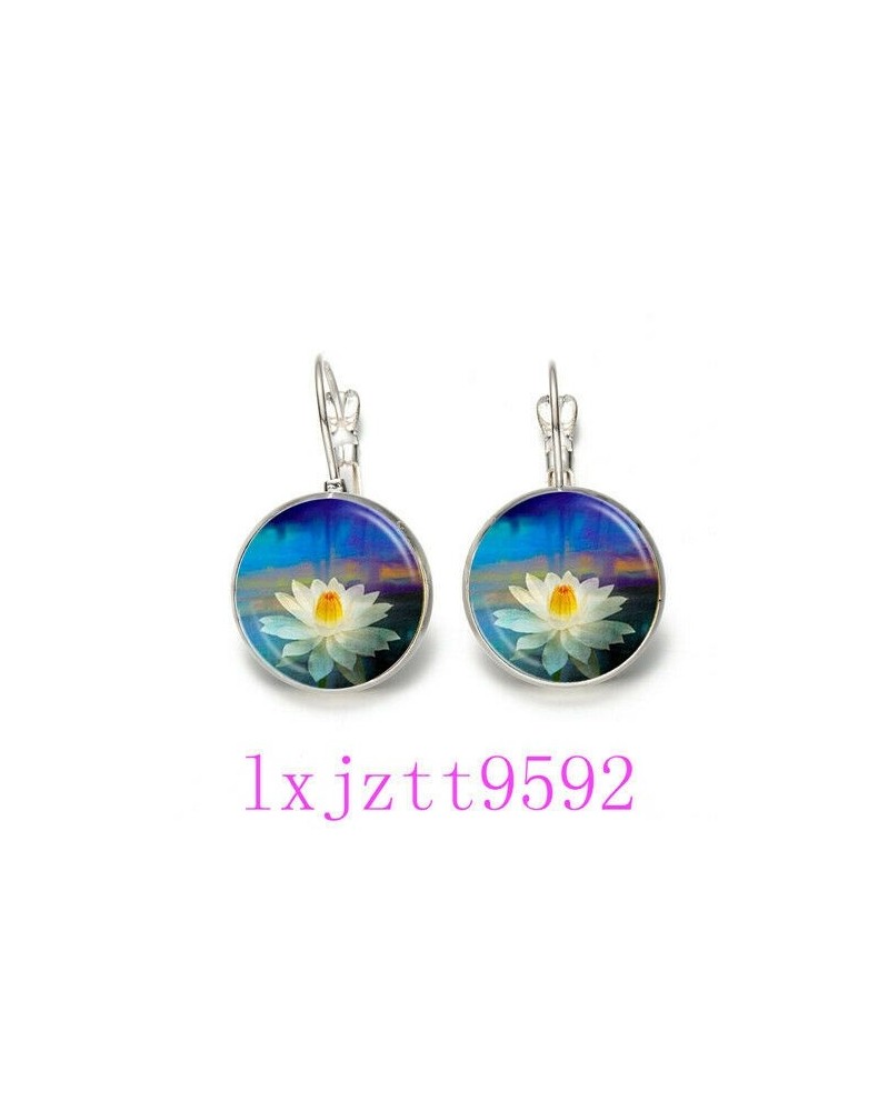 Nincs szín - fehér Lotus Glass cabochon (18 mm) karos hátsó fülbevaló ezüst női ékszer GB-110