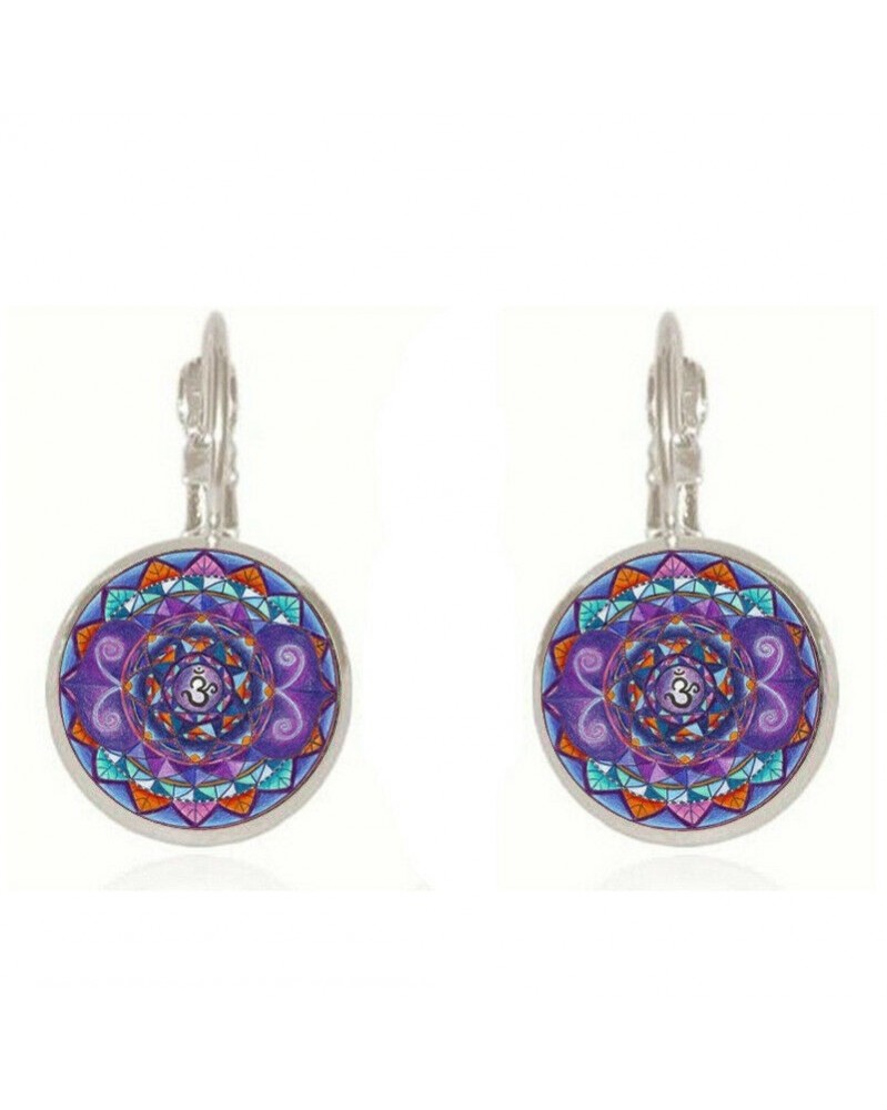 Nincs szín - 2018 Mandala Glass cabochon (18MM) karos hátsó fülbevalók ezüst női ékszerek GB-190