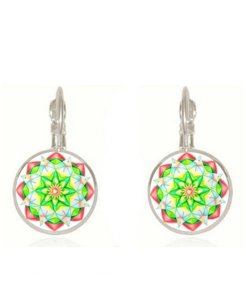 Nincs szín - 2018 Mandala Glass cabochon (18MM) karos hátsó fülbevalók ezüst női ékszerek GB-185