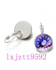 Nincs szín - Új mandala Glass cabochon (18MM) karos hátsó fülbevaló ezüst női ékszer GB-125
