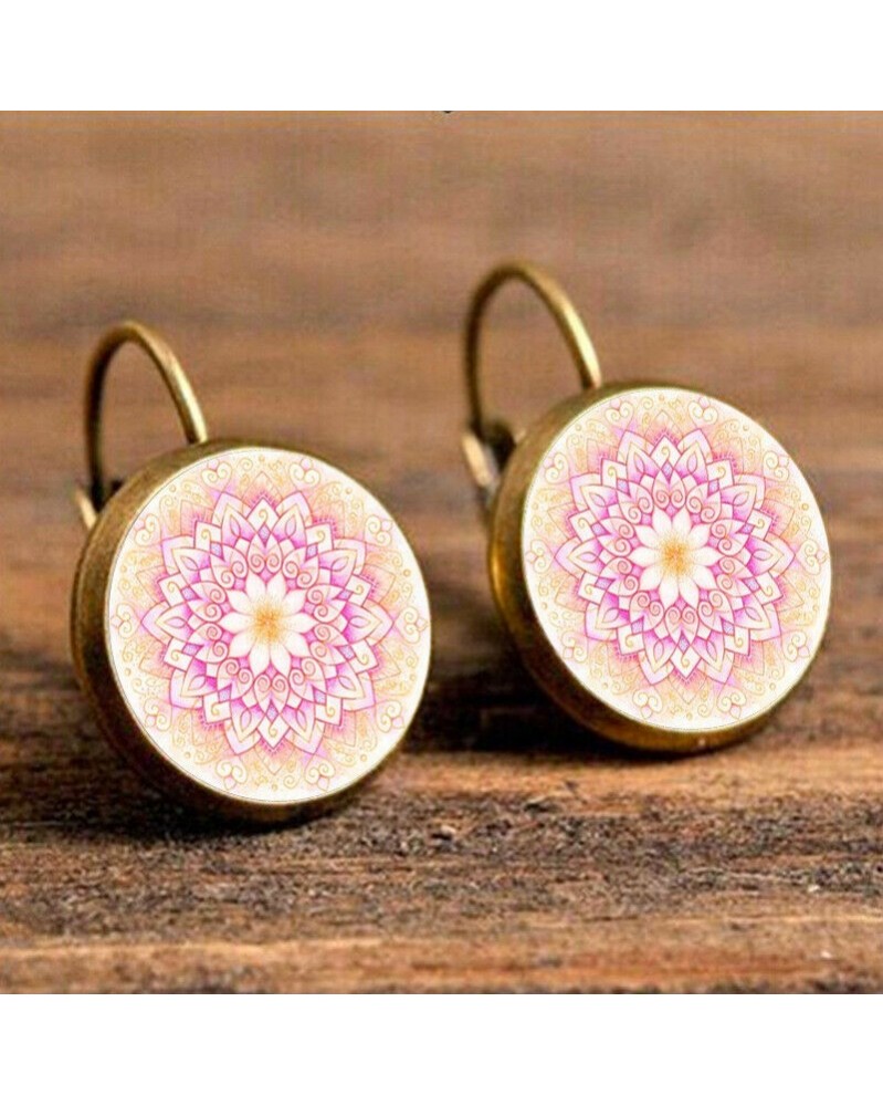 Nincs szín - 2018 Mandala Glass cabochon (18MM) karos fülbevalók bronz női ékszerek GB-163