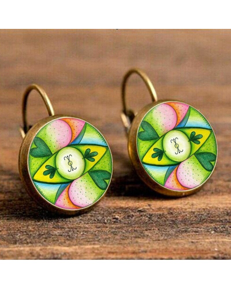 Nincs szín - 2018 Mandala Glass cabochon (18MM) karos hátsó fülbevalók bronz női ékszerek GB-150