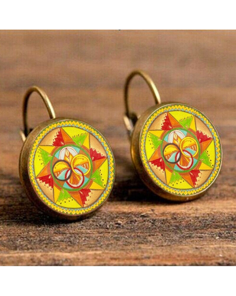 Nincs szín - 2018 Mandala Glass cabochon (18MM) karos fülbevalók bronz női ékszerek GB-191