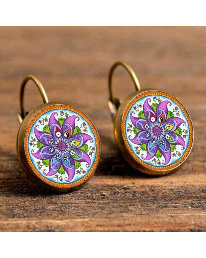 Nincs szín - 2018 Mandala Glass cabochon (18MM) karos fülbevalók bronz női ékszerek GB-192