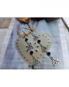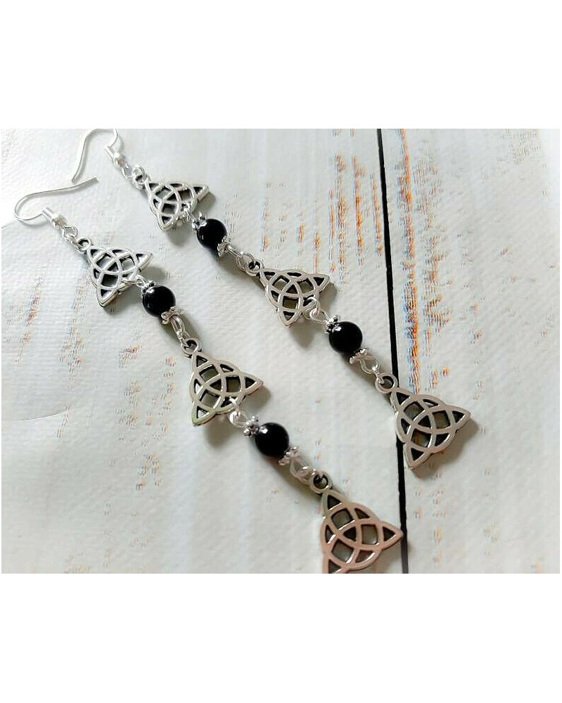 Nincs szín - Triquetra fülbevalók, obszidián fülbevalók, természetes kőből készült fülbevalók, pogány ékszerek