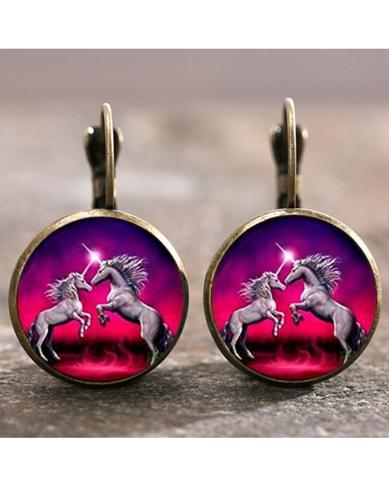 Nincs szín - 1 pár Horse Art bronz divatos üveg kabinos, 18 mm-es karos hátsó fülbevaló