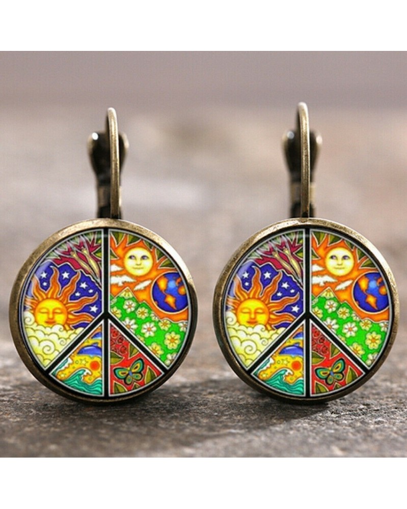 Nincs szín - 1 pár Hippie Peace Bronze Trendy Glass cabochon 18 mm-es karos hátsó fülbevaló