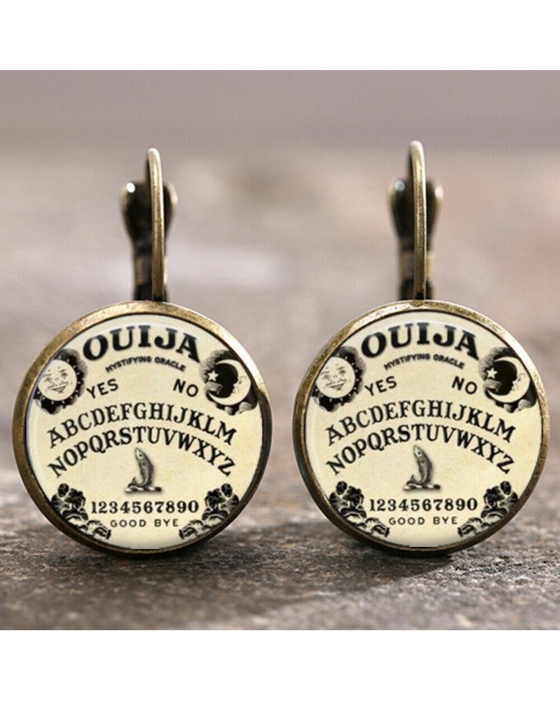 Nincs szín - 1 pár Ouija Board Art bronz divatos üveg fülbevaló 18 mm-es karos hátsó fülbevalóval