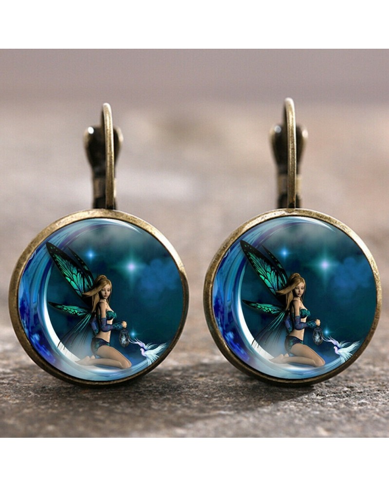 Nincs szín - 2 db / 1 pár tündér a Holdon Bronz divatos üveg 18 mm-es karos hátsó fülbevaló