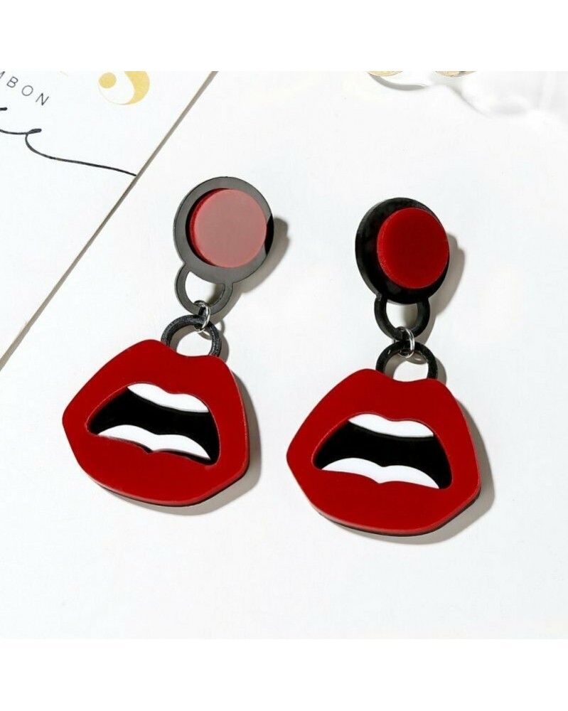 Vörös ajkak - Aranyos akril Boho fülbevaló gyanta csepp Dangle Stud geometriai női fülbevaló ajándék
