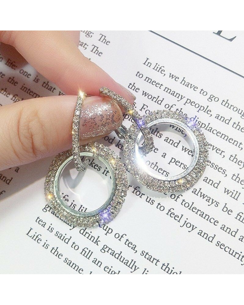 2-ezüst kör - Luxus geometriai kerek fülbevalók kristály karika fülbevalók női divat ékszer ajándék