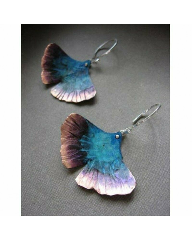 40-Lila ginkgo - Retro türkiz holdkő zafír ezüst fülbevaló akasztócsapó csüngő nők