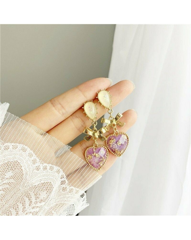 Rózsaszín - Divatos szív pillangó csomó zománc fülbevaló csüngő csepp Stud női ékszer ajándék
