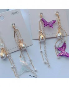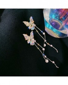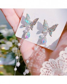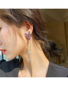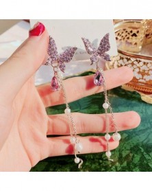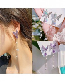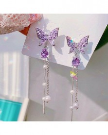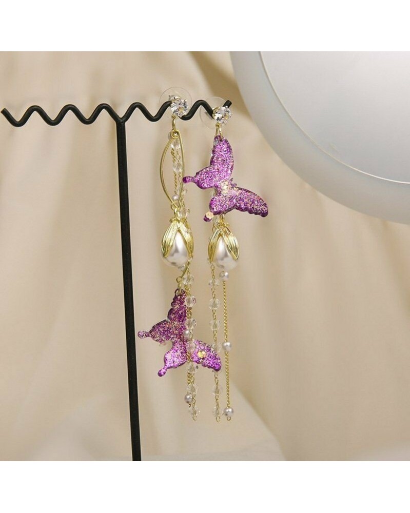 Gyöngy-lila - Divat pillangó bojt strasszos csepp fülbevalók lóg a nők gyöngy Pendientes