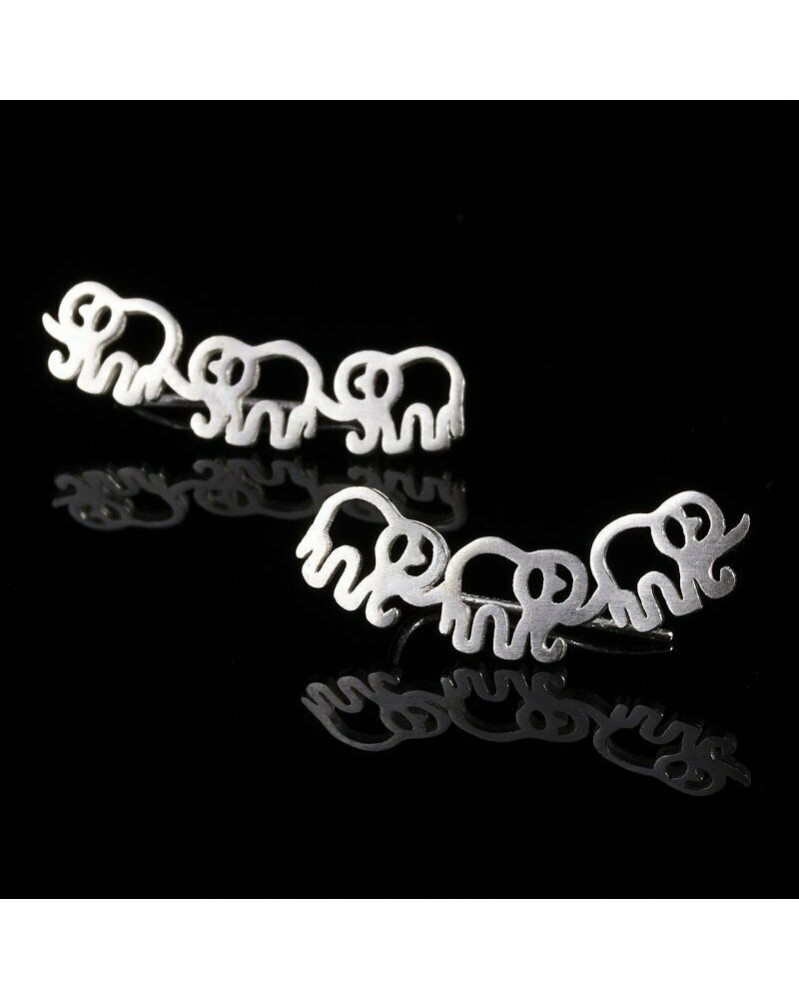 Elefánt-Ezüst - Elegáns, rozsdamentes acélból készült, geometrikus állati növényi kampós fülbevaló, fél női
