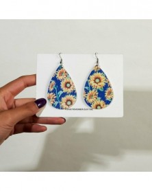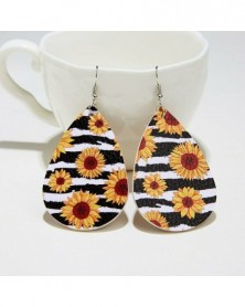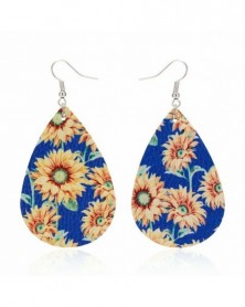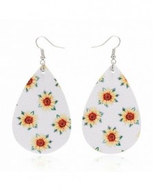 fehér - Boho napraforgó levélnyomtatású bőr fülbevaló horog Dangle Drop könnycsepp női ajándék