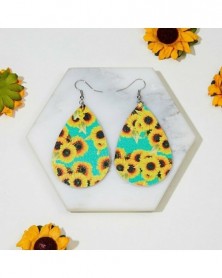 Kék - Boho napraforgó levélnyomtatású bőr fülbevaló horog Dangle Drop könnycsepp női ajándék