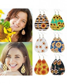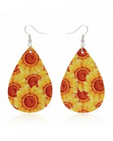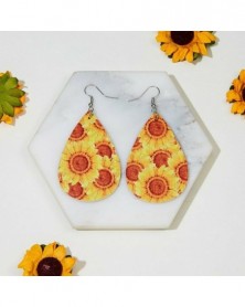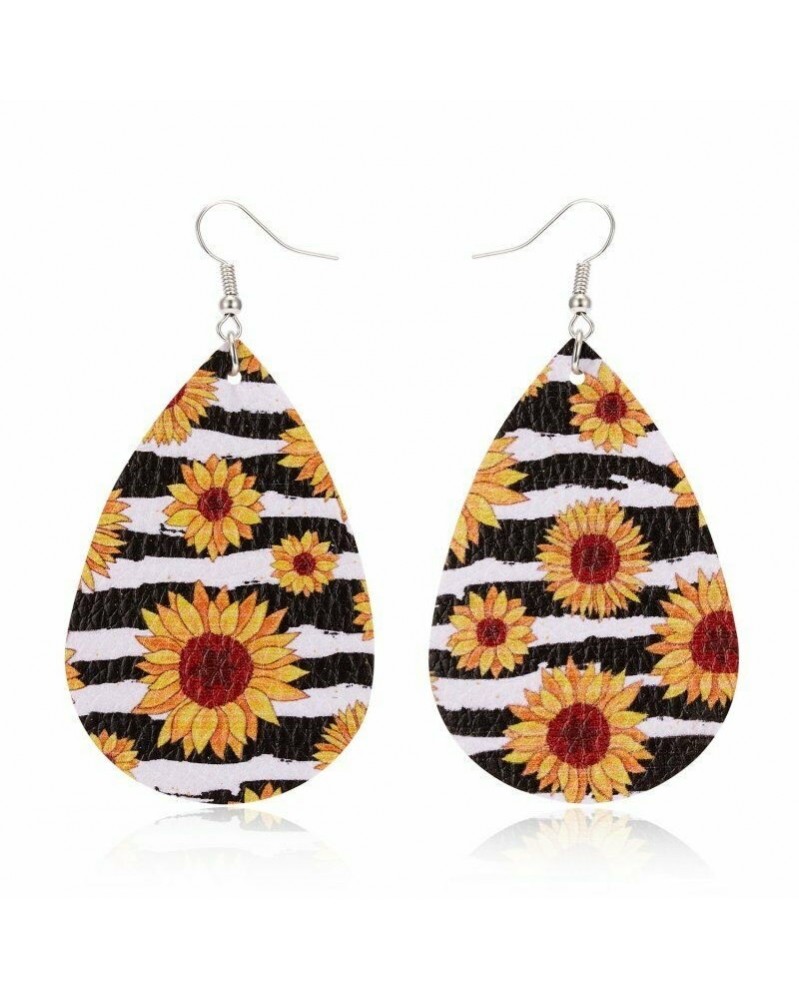 Csíkos - Boho napraforgó levélnyomtatású bőr fülbevaló horog Dangle Drop könnycsepp női ajándék