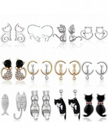 13-Crystal Cat - Elegáns aszimmetrikus gyöngy macska cica ménes fülbevaló női party tánc varázsa party ajándék
