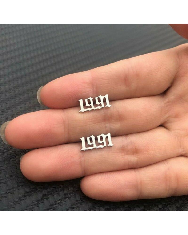 1991 - Rozsdamentes acél születési év ezüst színű fülbevalók száma születésnap dátum kezdeti