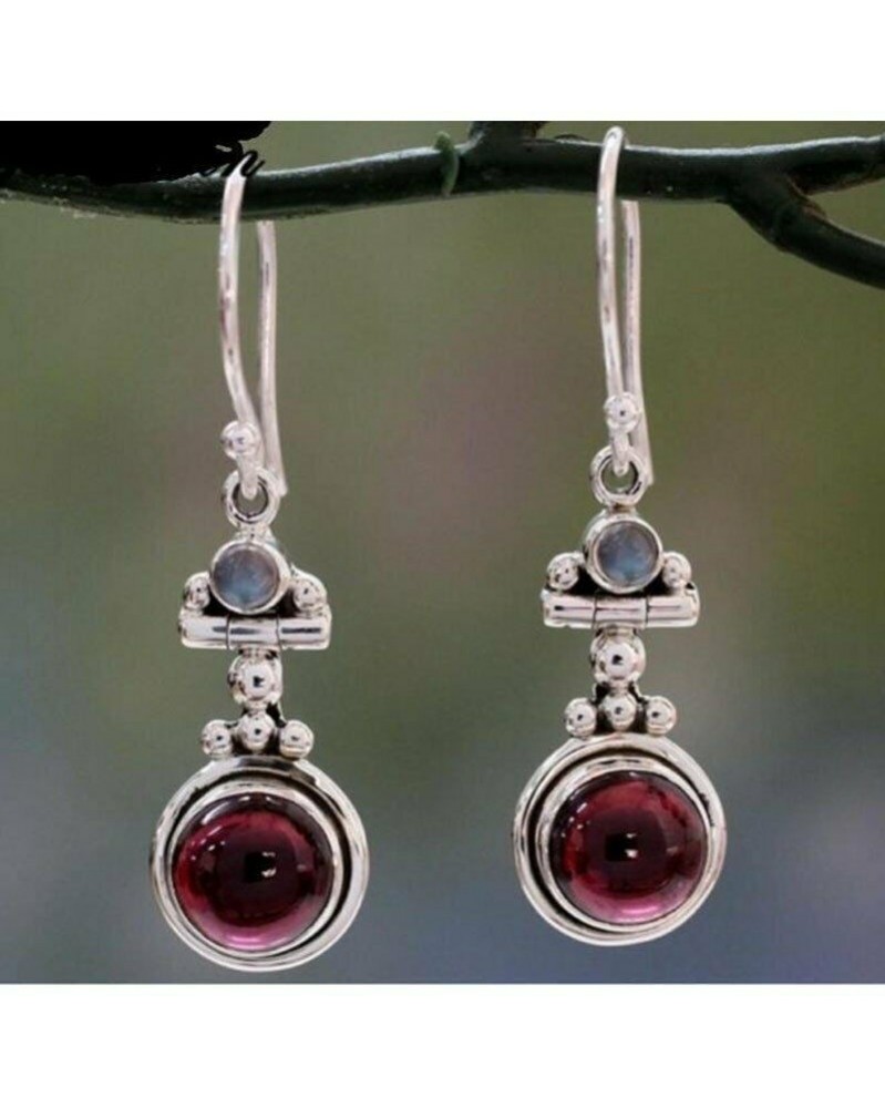 16-geometriai kör - Retro ezüst türkiz fülbevaló holdkő zafír kampós fülbevaló csepp nők