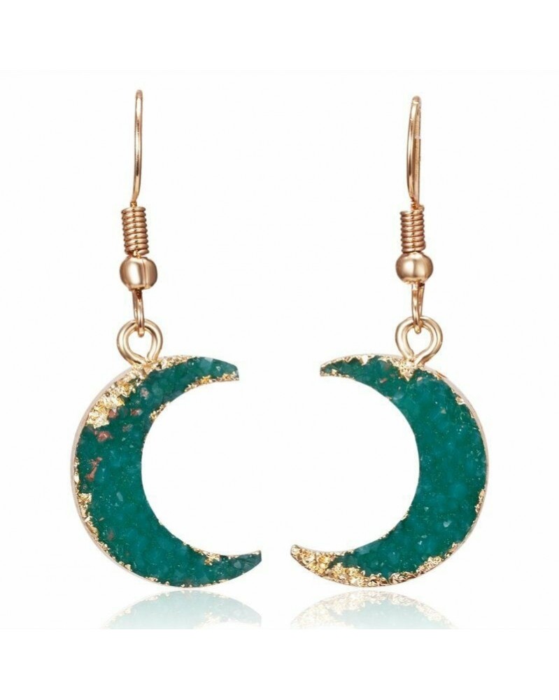 Hold-Zöld - Természetes kő kristály gradiens geometriai fülbevalók fülcsavar dangle horog nők