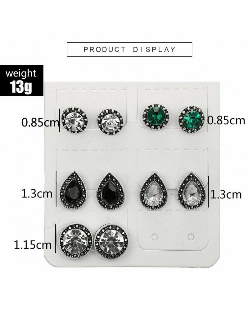 8-5pár vízcsepp - 12 pár női kristály Boho Hoop Bohemia fülbevaló készlet mandzsetta csap fülbevaló ajándék forró