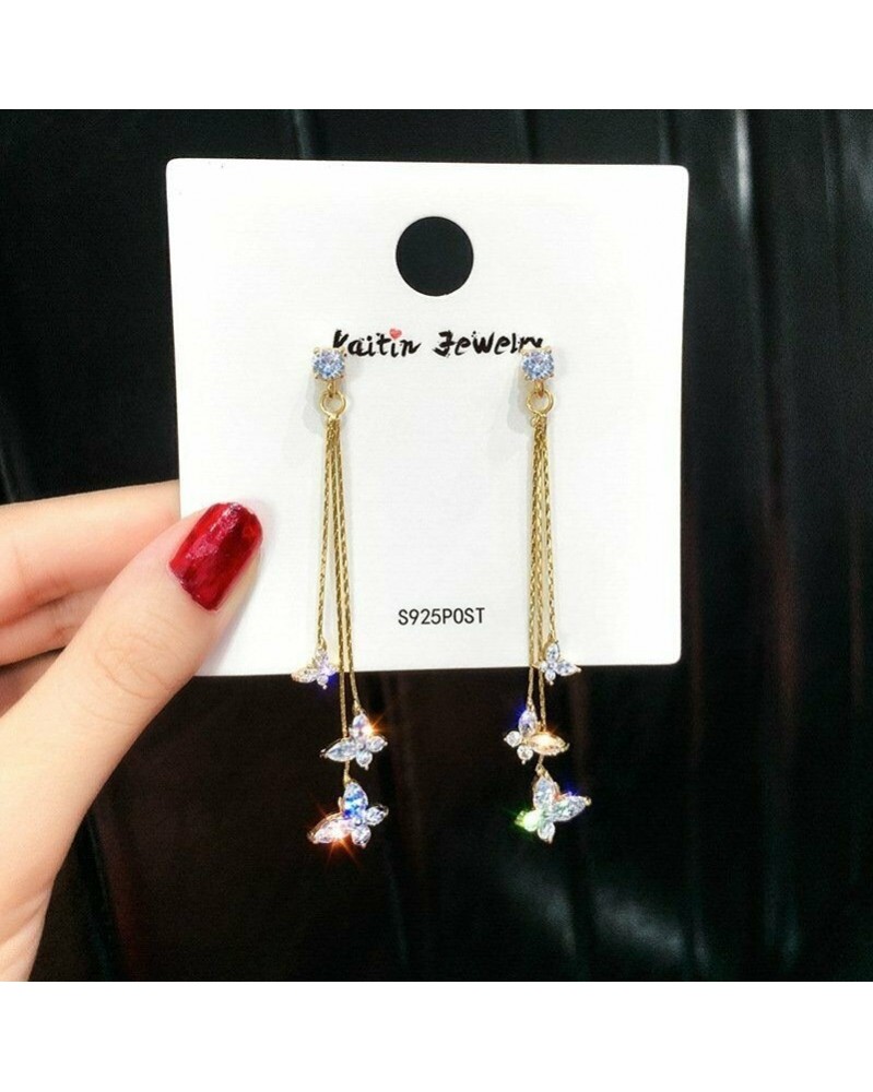 Arany - Divat pillangó bojt fülbevalók Stud Dangle hosszú csepp nők esküvői karácsonyi ajándék