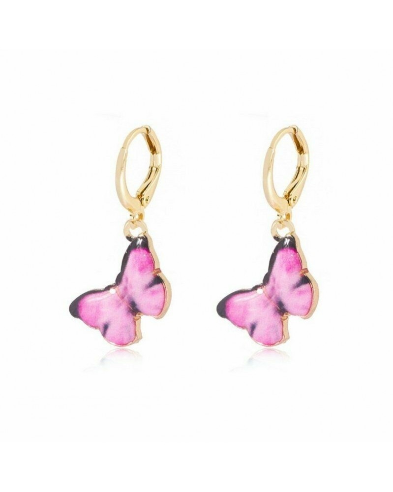 Rózsaszín - Divat pillangó rovar arany fülbevaló nők Boho Dangle csepp fülbevaló aranyos ajándék