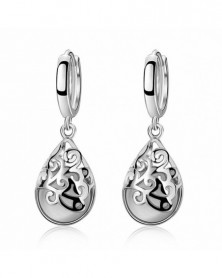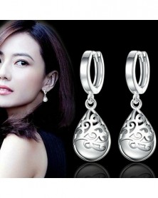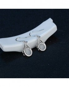 Nincs szín - Ezüst vésett fehér macskaszem holdkő csepp fülbevaló gyönyörű karika női ajándék