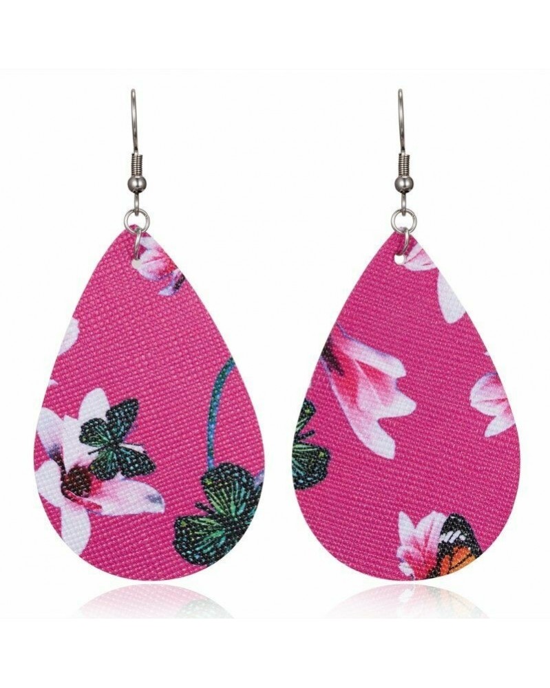 Vízcsepp-rózsa piros virág - Divat USA zászló labda Boho bőr fülbevaló csepp Dangle Hook könnycsepp női ajándék