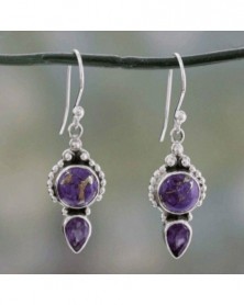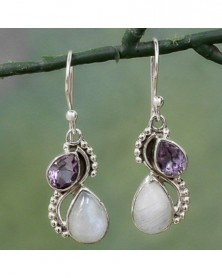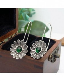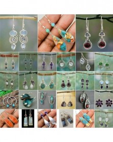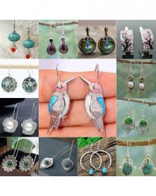 16 vízcsepp virág nyomtatású fül ... - Vintage női ezüst türkiz holdkő virágok levél fülbevaló horog Stud csüngő