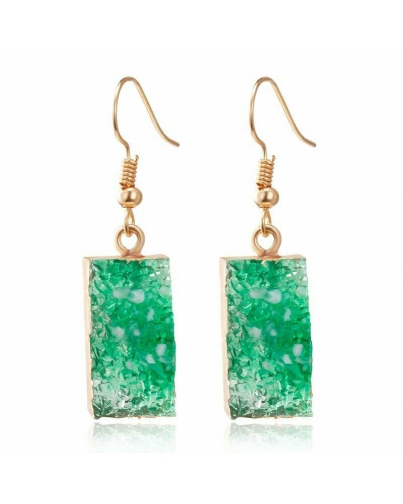 Téglalap-zöld - Kristály természetes kő színátmenet színű geometriai fülbevaló Stud Dangle női horog