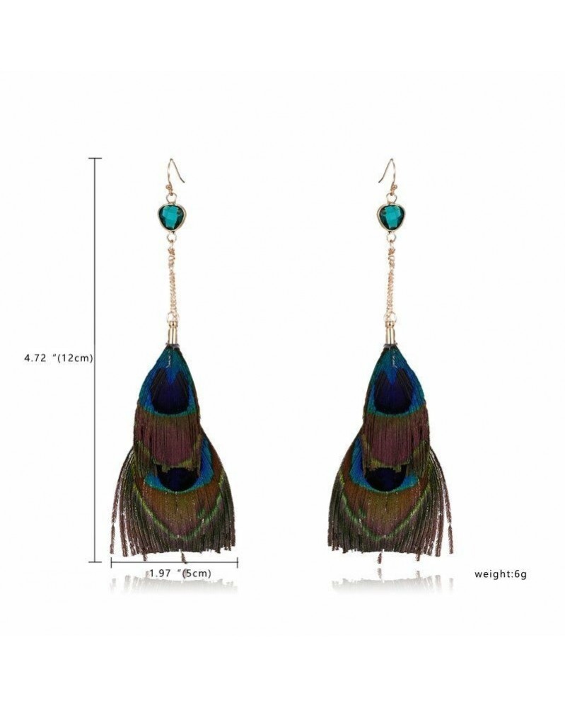 Dupla pávatoll - Retro Boho bojt toll Dangle hosszú csehországi fülbevaló horog bagoly levél levél menyasszony ajándék