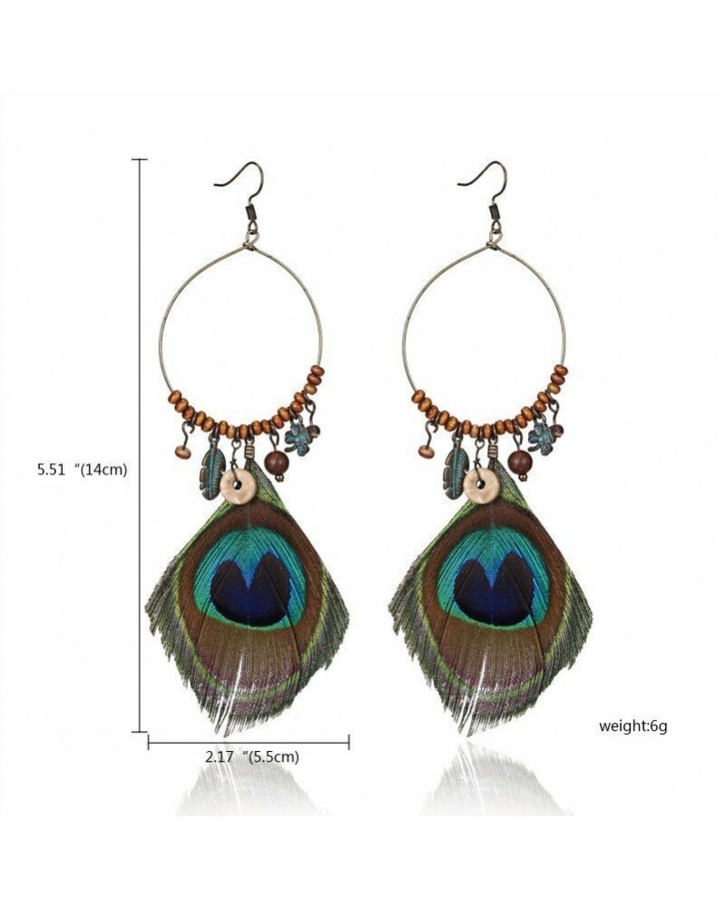 Pávatoll - Retro Boho bojt toll Dangle hosszú csehországi fülbevaló horog bagoly levél levél menyasszony ajándék