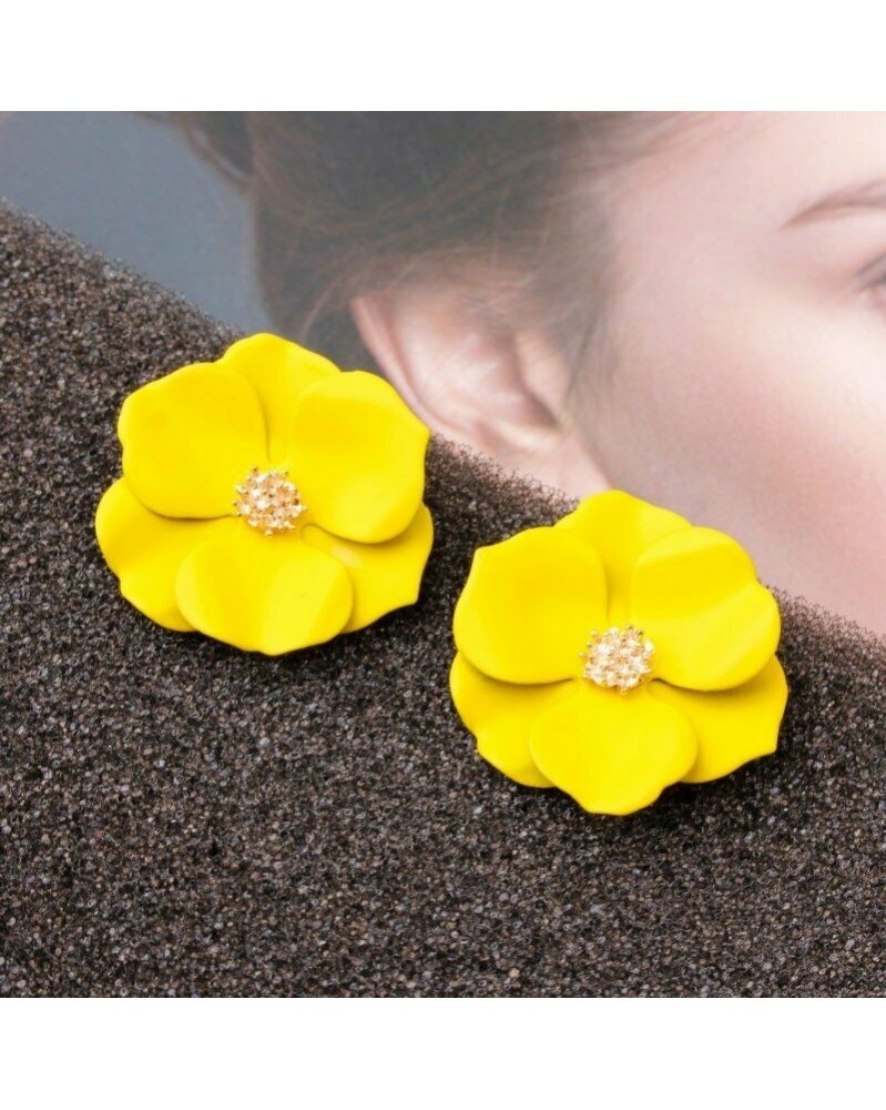 48-egyszerű virág sárga - Divat bazsarózsa virág csepp dangle fülbevaló Stud nyári esküvői party nők ajándék
