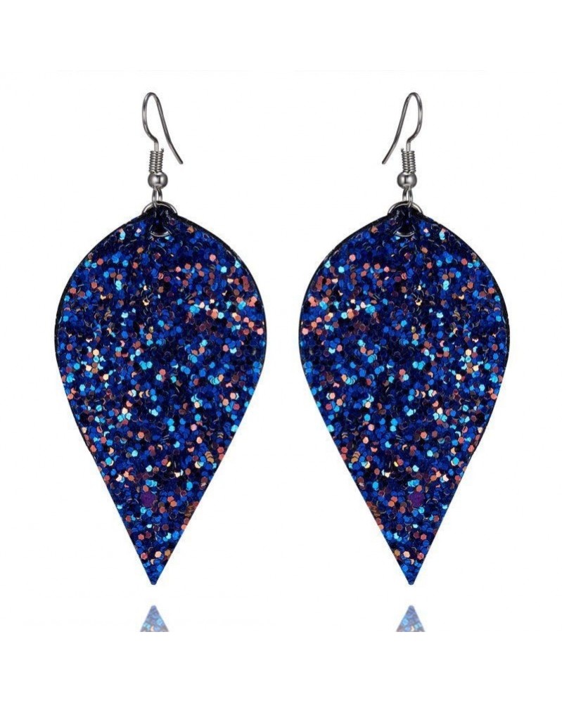 Királykék levél - Női levél dupla flitteres bőr fülbevaló Dangle Hook Stud Drop divatékszer