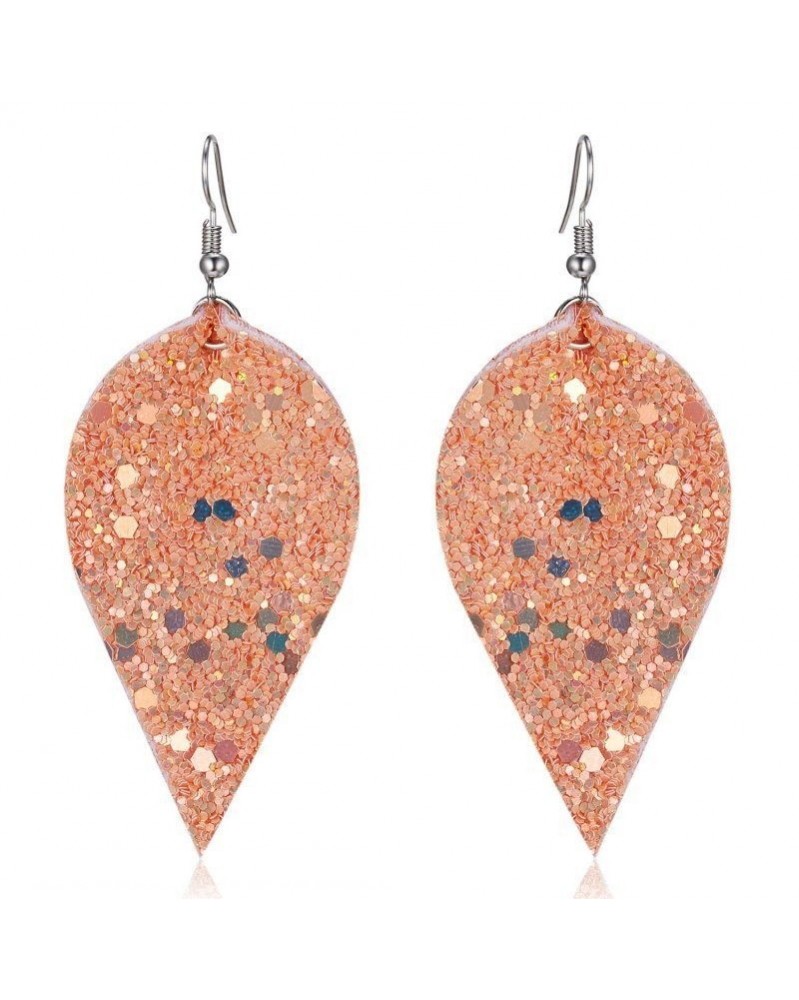 Rózsa arany levél - Női levél dupla flitteres bőr fülbevaló Dangle Hook Stud Drop divatékszer