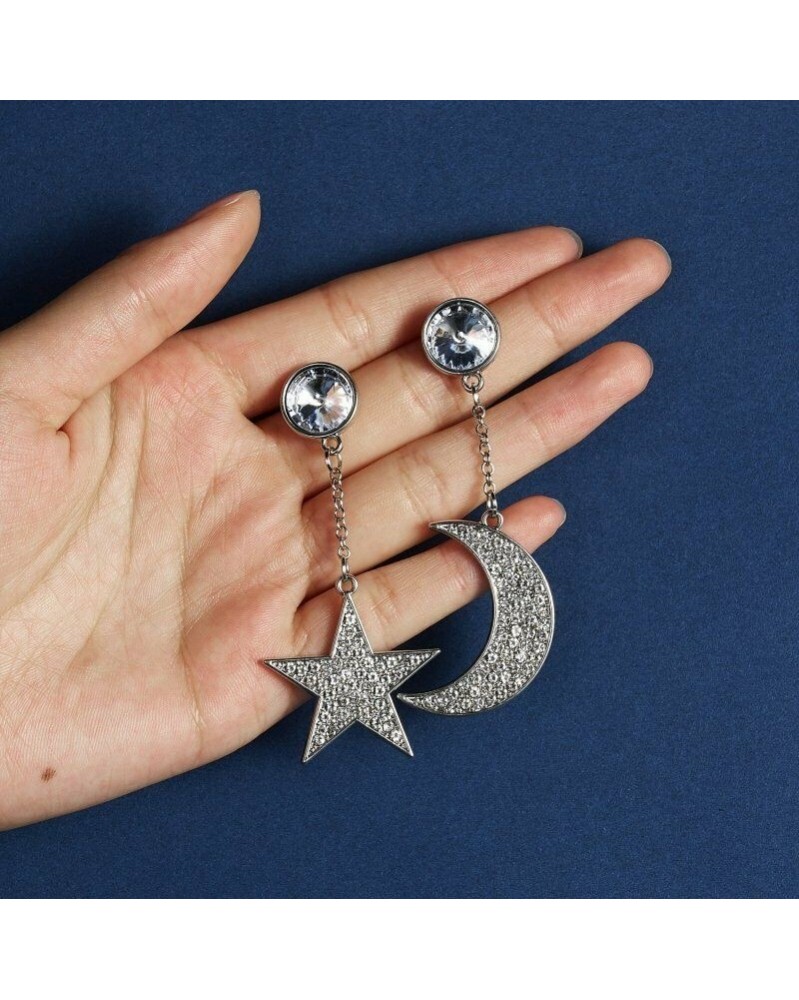 76-Hold és csillag ezüst - Divat kristály állat pillangó cirkon hosszú bojt fülbevaló csepp dangle party