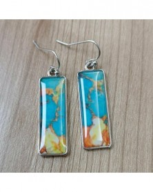 Nincs szín - Tarka üvegezett Retro fülbevaló geometriai négyzet alakú márvány kampós horgonycsüngő ajándék