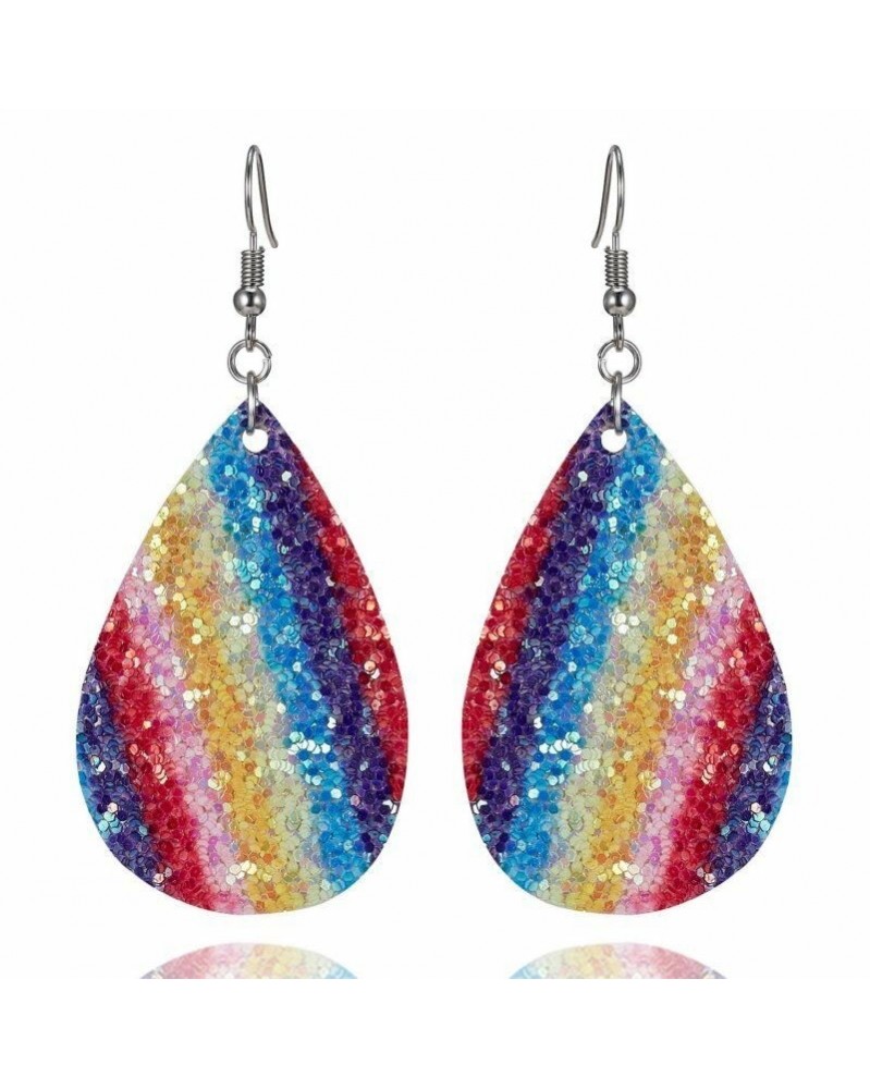 Többszínű vízcsepp - Divat flitteres bőr fülbevaló Boho Teardrop Dangle Stud női varázsa kézzel készített