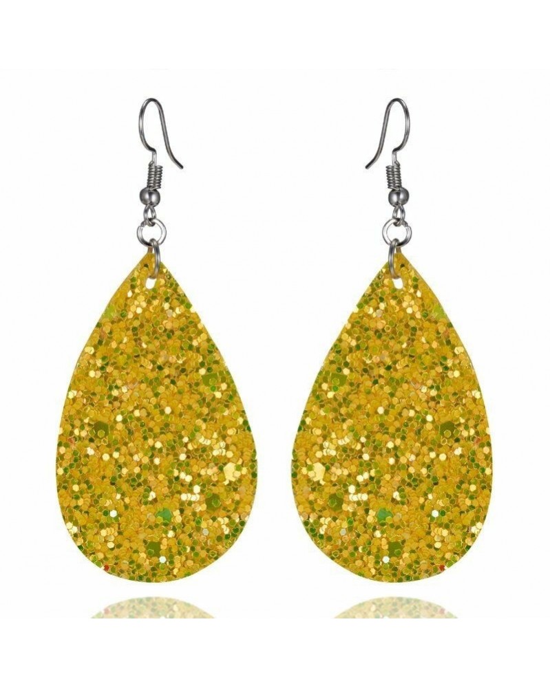 Sárga vízcsepp - Divat valódi bőr flitter leveles fülbevaló horog fülcsap dangle csepp nyári ajándék
