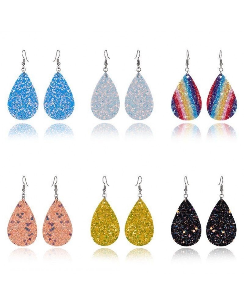 Vízcsepp Mix-2 - Divat valódi bőr flitter leveles fülbevaló horog fülcsap dangle csepp nyári ajándék