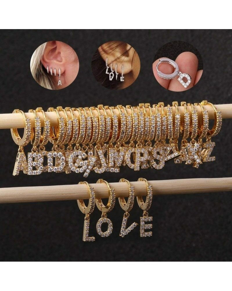 W - Nagykereskedelmi cirkónia AZ betű ábécé arany fülbevaló Stud Dangle Hoop nők 1PC