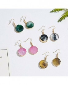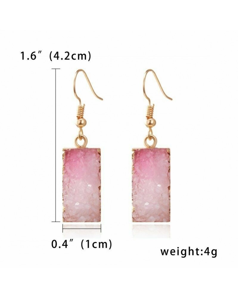 Téglalap-rózsaszín - Kristálygeometrikus természetes kő színátmenetes fülbevaló fülcsavar dangle horog ajándék