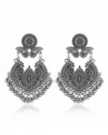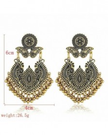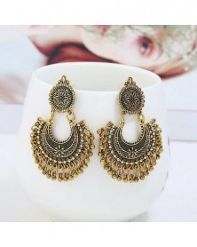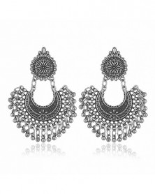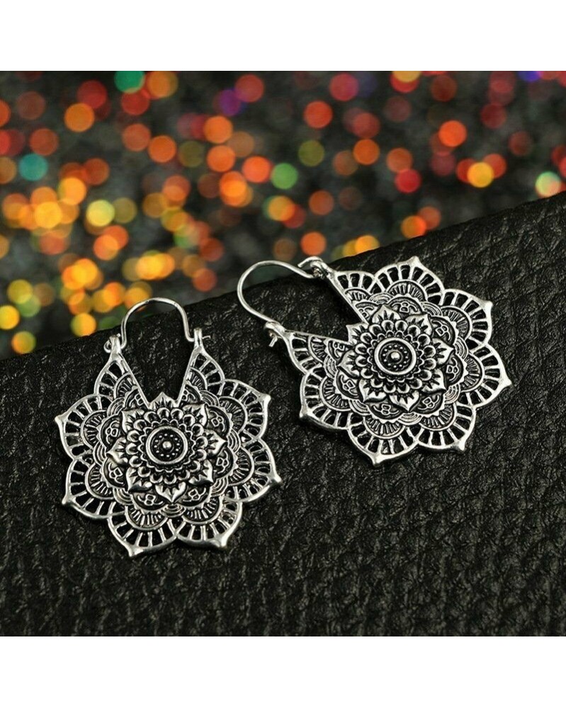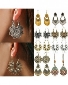 9-üreges virág ezüst - Retro női Boho tibeti bojt faragott gyöngyök geometriai csüngő cseh fülbevalók