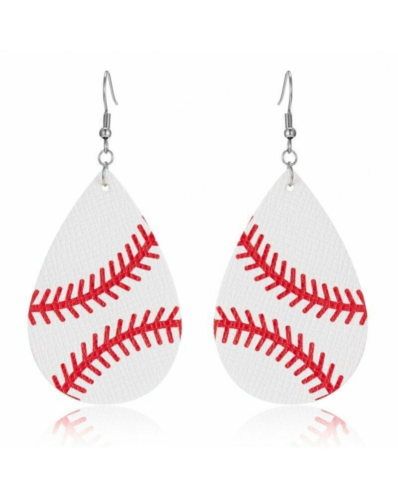6-baseball - Divat USA zászló labda Boho valódi bőr fülbevalók csepp dangle horog levél nők