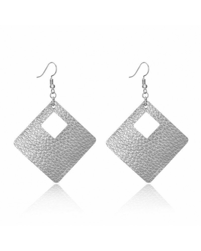 22-Ezüst - Divat valódi bőrből készült geometriai zászló fülbevaló női party varázsa kézzel készített ajándék