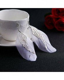 Nincs szín - Divat női lógó angyal szárny ezüst Boho hosszú toll akasztós fülbevalók ékszerek